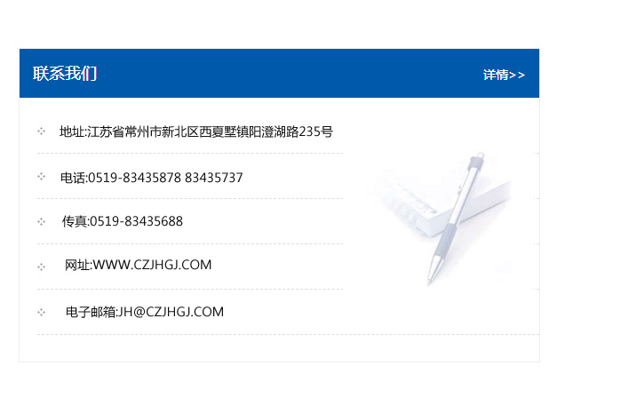 傳真:0519-83435688    郵編:213135    網址:WWW.czjhgj_com.jiaoguanzc.com    電子郵箱:JH@czjhgj_com.jiaoguanzc.com